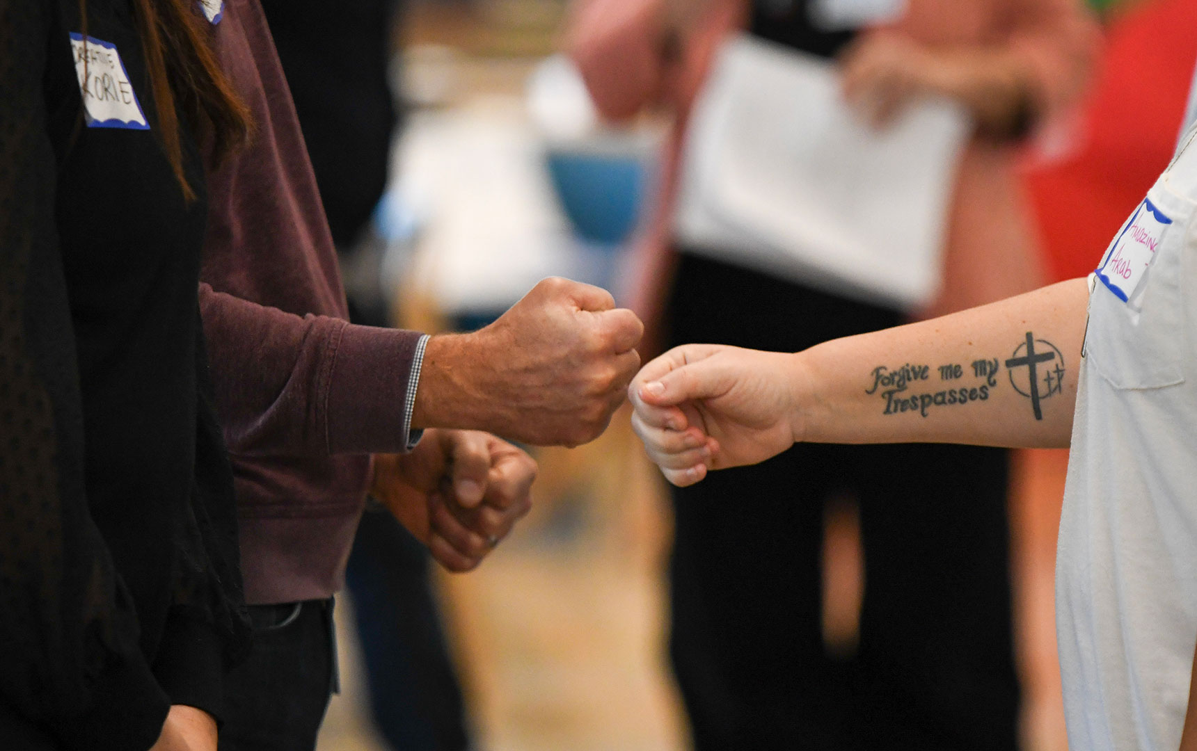 As the prompts grew heavier – “Step to the line if you’ve ever felt abandoned.” “Step to the line if you’ve ever struggled with self-worth.” “Step to the line if you’ve ever made a decision you deeply regret.” “Step to the line if you’re a veteran.” “Step to the line if you’ve been arrested.” “Step to the line if you didn’t have enough to eat as a child.” – something remarkable happened. The line between “us” and “them” disappeared. We stepped forward together. We stepped back together. We shared pain, fear, shame, joy, resilience, and humanity.